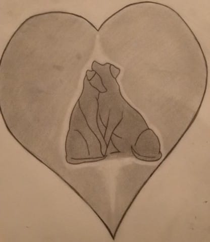 Ah, et comme mon Dingo s'est trouvé une copine ( pas pour la repro hein! Il est castré) j'ai fait un petit dessin tout en guimauve 🙂