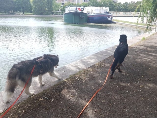 Aujourd'hui, ne sachant pas trop où aller promener Pandora et Black Pearl, j'ai décidé d'aller au bord du canal pour aller voir les péniches.