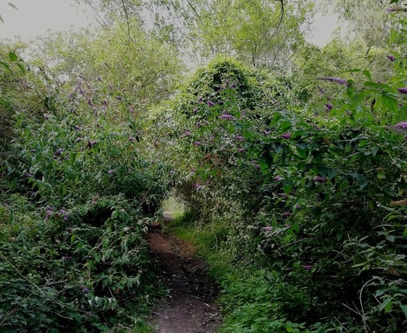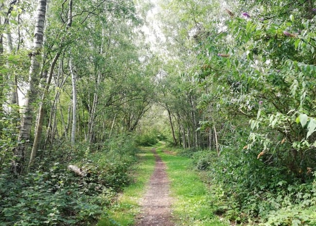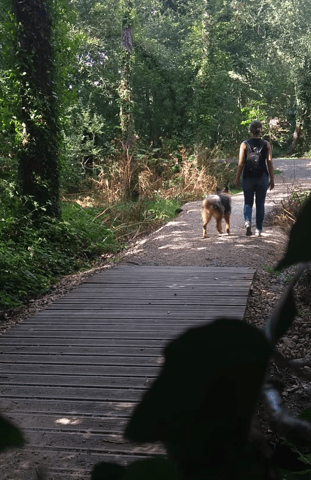 Reprise des ballades éducatives pour bébé Buck, champion de marche au pied "pseudo-libre" et pas bouger sur chemins fréquentés (par des fous, car quand on a un chien réactif on comprend que les gens sont... fous)(je laisse quand même la ficelle au cou, au cas où)