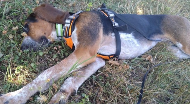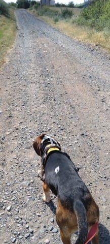 Padja a été sage, elle n'a fait que trois départ en chasse, 1 fois je suis aller la chercher au début, 2 fois retour rappel. Elle a été top avec les gens/Animaux croisé sur la route. Par contre elle a été attaqué par deux border colie de ferme. Je me suis interposé, mais la femelle a quand même réussit a la gniaker, ensuite le mâle est arrivé, décidé a attaqué, heureusement j'ai pu le tenir en respect le temps que la propriétaire vienne les renvoyé au panier.
