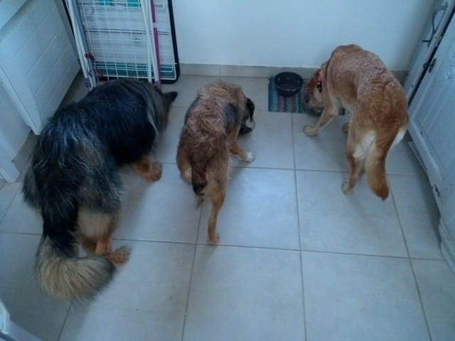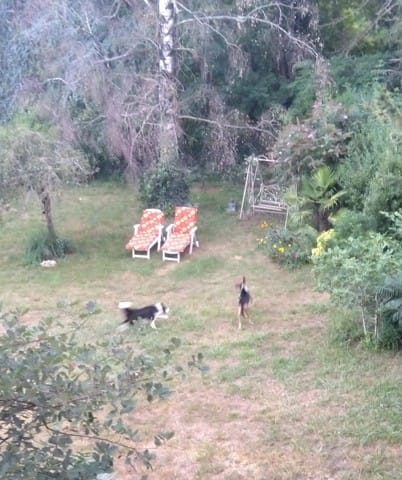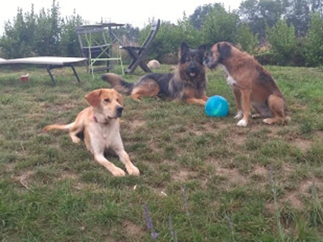 Le soir dans le Airbnb, il y avait un border colie et un boxer. Le boxer pas très sympa ( séparait les jeux en grognant, grognant un peu sur Padja, son attitude devait pas lui plaire ( queue entre les jambes, hérissée- lorsqu'elle connait pas, temps qu'elle est pas rassurée, elle fuit, et là en rentrant dans le Airbnb les deux lui ont sauté dessus sans trop de moyen de fuite,c'était un peu beaucoup pour elle). Mais avec le border, elle s'est rapidement rassurée et ils ont fini par jouer. Bon le lendemain il était un peu insistant le border a sauter sur Padja pour jouer avec qu'elle cherchait a faire les besoins et avait la tête dans le c** du matin mais bon, j'arrivais pas à l'attraper pour le calmer.