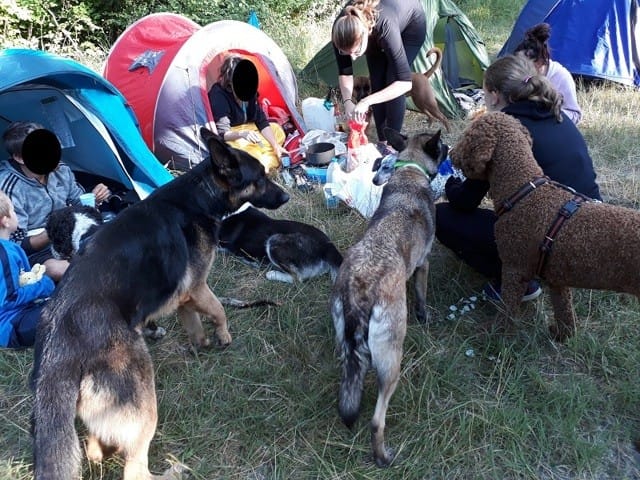 Plein d'humains (des adultes, des enfants), plein de chiens de toutes races (qui ne se connaissent pas tous !) en liberté, tout le monde réuni en cercle autour de la bouffe et... zero soucis.