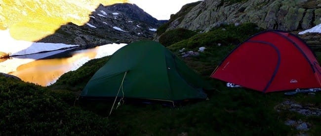 Le campement... les chiens étaient aux anges de voir de la neige en été !