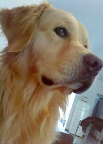 Diouk, mon golden retriever de presque 13 ans, est mon chien depuis tout bébé. Je l'ai eu à 17 ans. C'est un amour, jamais une once d'agressivité, le chien parfait.. Mais seulement voilà, depuis quelques jours il y a une ombre au tableau... Le 6 mai, petit contrôle de routine sans grande inquiétude chez le veto, je lui dis qu'il va bien, il dort beaucoup et a un peu de mal à manger sauf quand j'humidifie ses croquettes. Suite à ça, il le palpe et me dit sans prendre de pincettes '' c'est normal il a une tumeur aux ganglions ''. Coup de massue pour moi, le veto me dit qu'il ne fera pas de biopsie ou d'examen poussés vu son âge, que c'était risqué mais quand même une prise de sang qui se révèle être très bonne puisque tout est dans la normale, peut-être juste le foie un peu fatigué mais à priori rien d'anormal à son âge. Il commence à être un peu sourd, une légère cataracte et de l'arthrose.