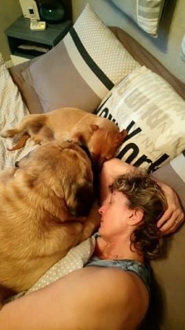 Elle est calme et mieux, on a développé une belle relation de confiance, elle aime être sur mes genoux dans le bus, on se fait des papouilles etc