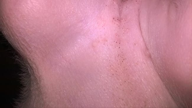 Pour les tâches, je ne parlais pas de tâches comme cela. On dirait plutot des petites piqures. Elle se gratte? Sinon elle est bien vermifugée et traitée contre les puces?