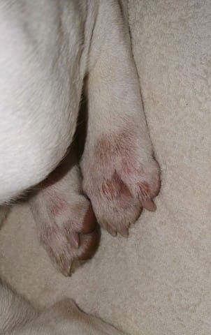 Bonjour à toutes et à tous, j'ai mon Jack Russell qui a 9 mois qui à les pattes rouges, je soupçonne un excema ou une allergie, il se baigne tous les jours dans les canaux autour de chez moi malgré l'arrivée du froid il continue, je me dis que c'est peut-être une allergie à l'eau ou une plante, je m'en étais pas rendu compte je pensais qu'il avait les pattes sales, mais il grognait quand je lui séchais les pattes après les ballades alors qu'il ne le fait jamais, je l'ai lavé hier et ces pattes sont toujours rouges. Avait vous déjà vue ce genre de chose sur vos chiens ? J'ai rendez vous chez le vétérinaire jeudi.