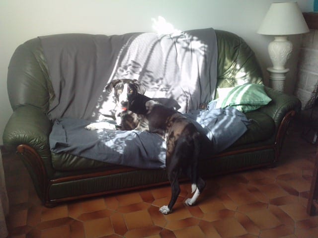 En jouant au quizz photo, je me rends compte que de nombreux chiens ont droit au sacro-saint canapé sur lequel on est si bien ! J'ai souvent lu qu'il fallait interdire cet endroit à nos toutous et, au début, soucieuse de bien faire, j'ai tenté de l'interdire à mon Lhassa (mes autres chiens n'étaient pas intéressés !). Pendant quelques jours, cet endroit a été source de conflits entre nous (il grognait méchamment quand j'essayais de l'en faire descendre, ce qu'il finissait pas faire de très mauvais gré...).
