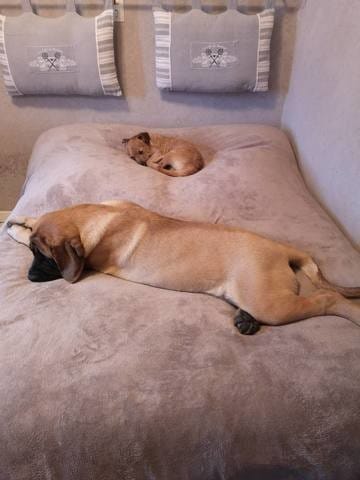Les photos et les vidéos arriveront plus tard car comme vous le savez il faut toutes les compresser ou passer par Youtube avant. C’est chiant et long ! Donc super voyage ! Mon "Simba" pas stressé du tout à dormi pratiquement tout le temps avec la tête sur mes cuisses. Il est contrairement à Moumouth très demandeur de câlins et de bisous. On voit qu’il a été élevé en famille. J’ai fais deux arrêts un en pleine campagne pour manger, boire pipi et on dirait qu’il a fait cela toute sa vie, no stress ! Deuxième arrêt en pleine ville, idem ! Il se fout des camions, des bruits, boit tranquillement et va faire son pipi. Arrivée à la maison : J’ai quand même écarté Jim trois jours car brutal et possessif dans les jeux je voulais déjà que la rencontre avec Moumouth et Tibidou se passe dans le calme. Moumouth s’est mis à l’écart, Simba a respecté son choix, et découverte de la maison et du jardin avec Tibidou et la famille. Pas de pleurs et inspection en règle de tout son territoire avec beaucoup d’arrêts bisous. Premier repas, il respecte le assis avant de manger. Puis pipi, caca dans le jardin avec débordements de caresses et de cris de joie. Idem repas du soir ! Entre d’eux jeu avec Tibidou. Pleins de gros gâtés, pas de mordillage ! Il ne détruit aucun jouet pour l’instant et se contente de tout renifler dans la maison sans rien toucher. Il s’est endormi à 9h30 dans son couchage au salon et je me suis couchée comme d’hab avec mes autres Loulous, on ne change rien ! Pas de pleurs mais à 1h30 une grosse truffe humide se pose sur ma main et il finit sa nuit en se couchant sur un matelas posé juste à coté du lit. (mis en prévision). 6h30 Simba bouge ! Je me lève, direction jardin et pipi caca tout de suite. Finalement à cette heure ci je n’ai pas eu le moindre accident dans la maison. Après son repas, et une partie de jeux il dort paisiblement au salon alors que je suis dans mon bureau. Moumouth et Tibidou sont très peu perturbé par leur nouveau petit frère et je pense que d’ici une semaine la Misantroupe aura établi ses codes. Bref je suis aux anges d’avoir ce petit bonhomme qui va être je pense au top ! Biz à tous !