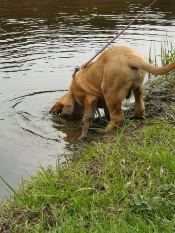 Je reviens de chez le véto pour la pesée hebdomadaire de Simba. Il a pris 2 kg 5 cette semaine ce qui est parfait. Il a donc déjà dépasser largement les 30 kg. Je pense qu'il sera plus costaud que Moumouth. Après trois quarts d'heure de balade près d'une rivière. Pénible car c'est un véritable canard, il plonge la tête sous l'eau jusque derrière les oreilles et irait déjà bien nager derrière Moumouth qui ne s'est pas privé d'une bonne longueur de brasses.