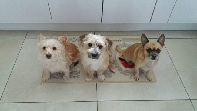 A gauche, la maman de Tibidou, au centre Noé son frère et à droite le Chichi!