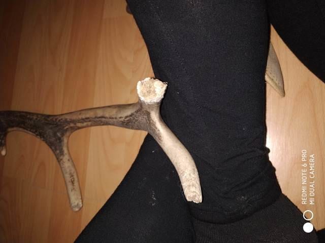 Le bois de cerf d'Odin a les pointes sciées il n'en a jamais cassé de gros morceau.