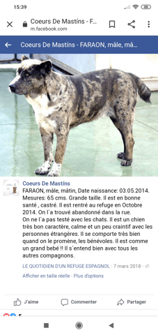 Je vous l'avais promis, voici un nouveau post sur l'évolution de Casey qui est à nos côtés depuis déjà presque ..6 mois, la moitié d'une année s'est déjà écoulée depuis ce jour où nous sommes allés le chercher sur une aire d'autoroute ce matin du 3 février...J'ai l'impression pourtant de l'avoir depuis bien plus longtemps. J'ai tellement choses à vous dire que je ne sais par où commencer. Vous le savez je m'étais éloignée quelques temps de wamiz ne trouvant plus de réponses à mes interrogations, il faut dire qu'adopter un chien venu d'un pays où règne la misère animale est bien différent d'une démarche d'adoption d'un chien français, même traumatisé car les chiens n'étant pas considérés comme animaux de compagnie pour beaucoup d'espagnols, ces chiens arrivent en France presque encore à l'état sauvage, comme peu apprivoisés, un chien venu d'un autre monde, qui, avant d'être présenté à ses congénères etc... doit d'abord apprendre à découvrir une autre culture, celle d'un pays où, même si le taux d'abandons y est record, l'animal est cependant considéré comme un être sensible, doté de droits. Pendant ces six mois, Casey a découvert sa nouvelle vie en France, des nouvelles règles, un nouveau statut, le droit d'exister en tant qu'être vivant et non celui d'être réduit à un objet utile à la garde…. Si tout était à refaire, je lui laisserai le temps de d'abord découvrir le monde extérieur dont il semble avoir été privé au début de sa vie et seulement après, je m'attacherais à lui présenter des copains...Je me rends compte que j'ai voulu aller trop vite, trop d'informations l'ont noyé….D'ailleurs rappelez vous de ses problèmes de sociabilité, de la rencontre de Casey et Jim, d'un Casey maladroit et harceleur qui ne parvenait pas à trouver le mode d'emploi pour jouer..;eh bien les choses ont bien changé depuis. Je ne peux et je ne souhaite toujours pas lui présenter des chiens en laisse, ça me paraît encore trop tôt mais à force de vivre avec Casey j'ai compris celui qu'il était, Casey harcelait par peur et non pas car il était top foufou comme j'ai pu le penser à une époque. Certains chiens sont agressifs avec leurs congénères, Casey harcelait pour exprimer son mal être à leurs côtés. Casey n'était pas capable comme un chien "lambda" de communiquer avec d'autres chiens sans l'aide d'un humain pour lui montrer comment faire. Aussi triste soit il, il semble avoir été séparé si tôt de sa mère qu'il sen remet à moi pour savoir ce qu'il faut faire et quand je lui disais stop quand je le trouvais trop harcelant , il s'arrêtait de suite. Casey est comme beaucoup de mâtins très intelligent, c'est une race qui est souvent citée pour son intelligence. Quand on l'avait laissé faire avec Misanthrope, il avait fait n'importe quoi, il ne parvenait pas à comprendre le mode d'emploi, pour jouer avec les chiens et se renfermait dans son mal être..Il n'était pas capable de comprendre la communication d'un chien bien dans ses pattes.