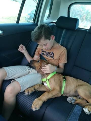 Il a passé tout le trajet (nous l'avons fait en 2 jours) le museau sur mes genoux. Il est très calin et semble comprendre assez vite.