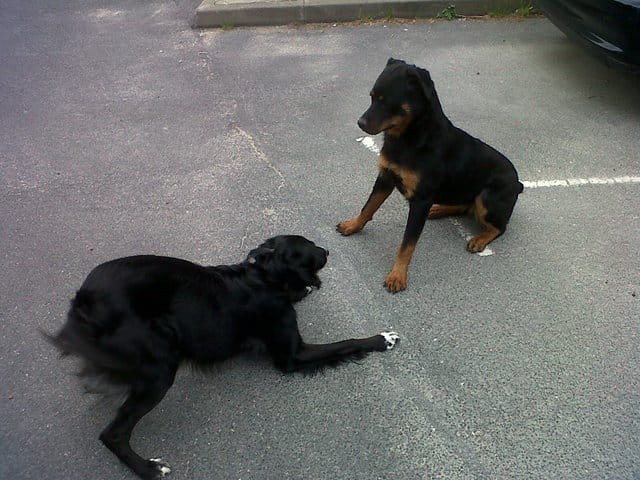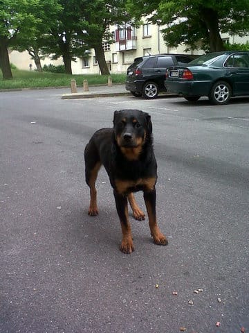 Aujourdhui j'ai trouver une chienne rott agée d'un an apeupré car elle a la dent toute blanche et est pas bien haute, caché a coté d'une voiture, et je les jamais vu dans le quartier donc tout de suite j'appel un voisin qui vie juste en fasse et qui a la vu sur la chienne et on appel la police pour que la fourière puisse la récuperer car elle peu etre a une personne ou bien elle peu ce faire tué ...donc on nous dit d'attendre 45min car je suis d'argenteuil et c'est la SPA d'Orgeval qui s'occcupe du secteur, en attendant j'essaie de m'approcher d'elle , pas facil avec mon chien qui veu aller la voir , et il faut qu'elle reste a coté de moi pour qu'on puisse la prendre, mais on c'est jamais je connais pas la chienne, elle montre les dents sans grogné donc j'attend un peu je me baisse et l'appel gentiment, elle ne vient pas de suite donc je monte chez moi chercher des friandises , une musoliere, et une laisse(longe), le voisin a surveiller la chienne en attandant. Je redescent et essaie de l'apprivoisé avec la nourriture et elle commence a s'approcher et manger au sol ensuite dans ma main. Elle s'approche de plus en plus de moi, et je vois qu'elle est pas agressive mais plutot apeuré des bruits, sac, elle regarde derrière elle, donc je lache mon chien car elle avait l'air de rien dire, et ils ont jouer. J'ai réussi a lui passer la longe autour du coup et a la garder tout prés de moi attandant la fouriere. Le mec me dit que si dans 10jours personne la réclame je peu envisager une adoption. En la voyant partir j'etais vraiment triste j'ai commencé a m'accrocher a elle, elle ma lécher comme pas possible et fait des calin et me regarder comme pour me dire merci ou je suis bien la ! C'est bete a dire je les eu que pendant 1h mais voila coup de foudre.