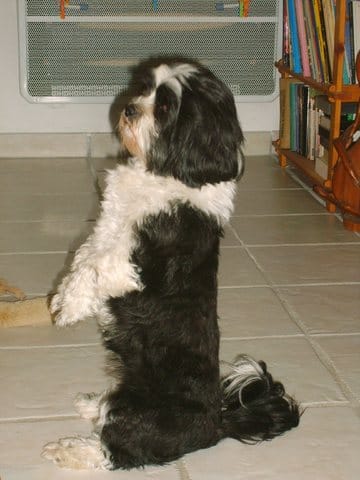 Ma petite Kaya n'est très douée pour le assis mais par contre elle fait "la belle" et danse. Elle peut comme beaucoup de sa race rester sur ses fesses, un bon moment. Une fois "assise" je lui tend une friandise au dessus de sa tête, elle se relève sur ses deux pattes arrières et ensuite je fais des petits cercles au dessus de sa tête et Kaya tourne sur elle même.Maintenant c'est systématique...