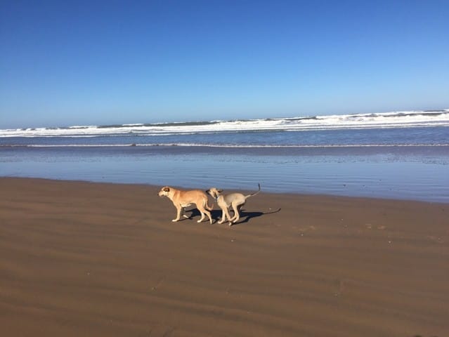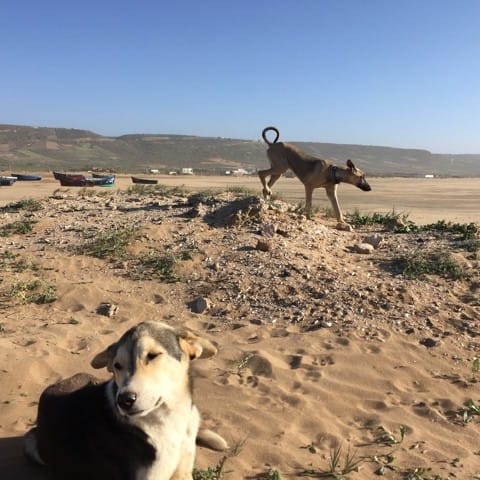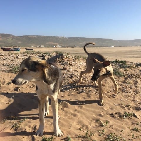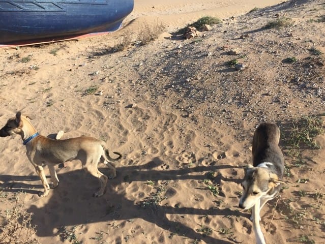 Vous qui connaissez mes problèmes pour la socialisation de Xena qui ne rencontre jamais de chiens, hier on a été à la plage, et belle surprise, Xena a rencontré 6 chiens vagabonds dont 3 chiots, Vraiment ravie, elle a super bien réagi, n’a pas eu peur, elle s’est approchée avec mon encouragement. Je suis d’abord aller vers eux puis elle m’a suivi.