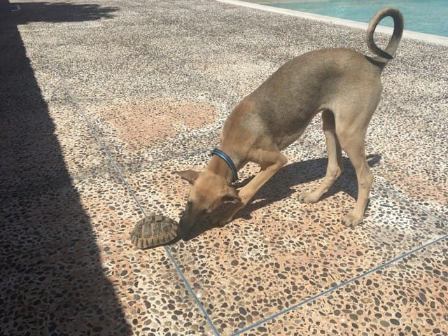 Aucune agressivité de sa part ou de la leur. Par contre elle était la seule qui voulait jouer, je me demande d’ailleurs si les chiens errants n’ont juste pas l’habitude de jouer… Voici les photos, trops nombreuses, de la rencontre, il y avait un chiot et un chien qui ressemblait vaguement à des loups… Vraiment beaux… Les 200km parcourus pour nous et Xena valent vraiment le coup..