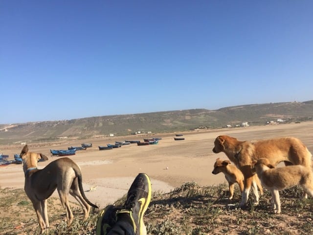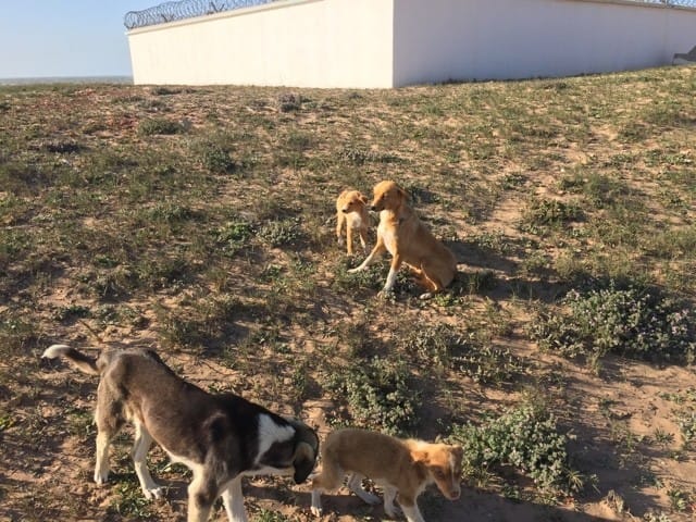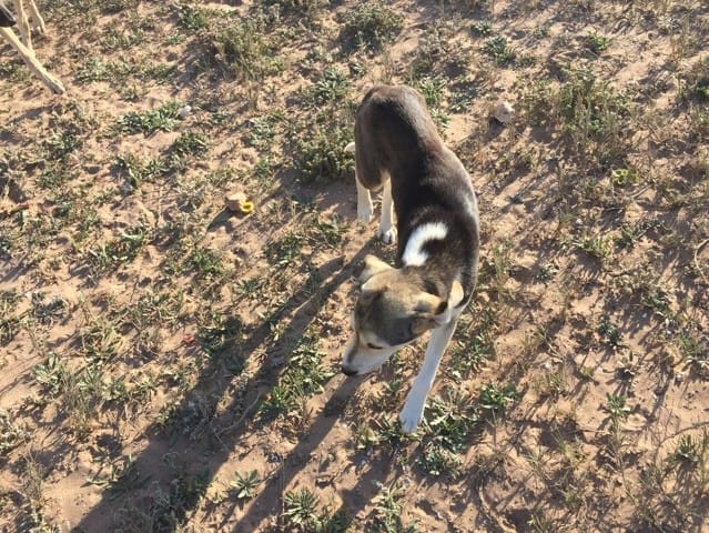 Aucune agressivité de sa part ou de la leur. Par contre elle était la seule qui voulait jouer, je me demande d’ailleurs si les chiens errants n’ont juste pas l’habitude de jouer… Voici les photos, trops nombreuses, de la rencontre, il y avait un chiot et un chien qui ressemblait vaguement à des loups… Vraiment beaux… Les 200km parcourus pour nous et Xena valent vraiment le coup..