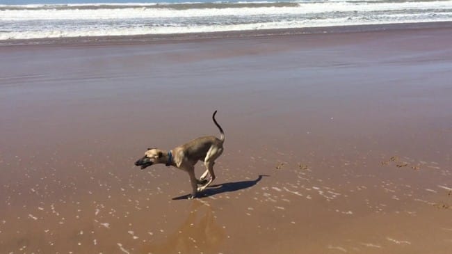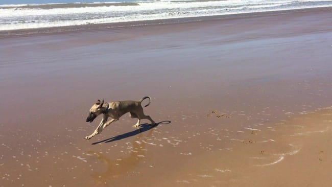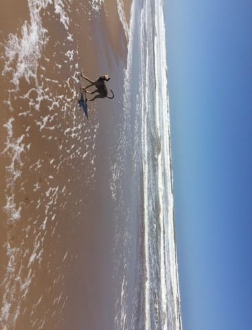 Vous qui connaissez mes problèmes pour la socialisation de Xena qui ne rencontre jamais de chiens, hier on a été à la plage, et belle surprise, Xena a rencontré 6 chiens vagabonds dont 3 chiots, Vraiment ravie, elle a super bien réagi, n’a pas eu peur, elle s’est approchée avec mon encouragement. Je suis d’abord aller vers eux puis elle m’a suivi.
