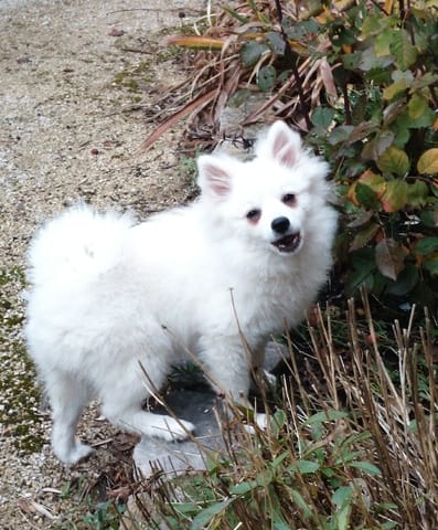 En octobre j´ai acheter une Spitz Blanc nain non Lof en animalerie ( quelle idée aussi...) On m´a dit là qu´elle était née le 20 mai 2013 ( ce qui figure sur ses papiers Hongrois...) et qu´ elle ne ferait, adulte, pas plus de 3,5 kilos.