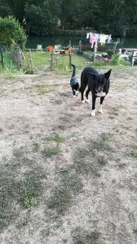 En d'autres termes, c'est pas ma chienne qui décide où et comment se déplacent mes chats sur LEUR territoire, à aucun moment et d'aucune façon, que ce soit en coursant, en bloquant le passage, en me collant, ou autre. Sinon, c'est moi qui l'éjecte.