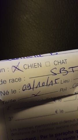 S'il manque le numéro de LOF, et qu'il y a écrit "de type stafforshire bull terrier", demande à ton vétérinaire de faire une évaluation provisoire.