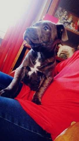 Stenad, il fait pas rire le tien lol !! Non non au contraire j'ai attendu 1an et demi pour me decider sur la race, j'ai 2 enfants en bas age, et je ne voulais pas un american staff en corpulence ... Nous voulions un chien sportif et dynamique comme nous avec une grande gentilesse et aimant les enfants pour sa nous sommes RAVIS !! Mon inquietude venait juste du fait que je n'ai vu aucun Staffie male a - de 4kg a 3 mois mais vos messages me rassure. Je l'aime autant que mes enfants et c'est notre premier loulou, on veut le meilleur pour lui 😉.