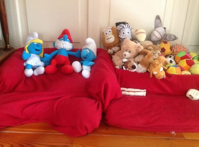 Pour ses 2 ans je lui avais acheté le sctroumpf content