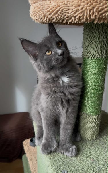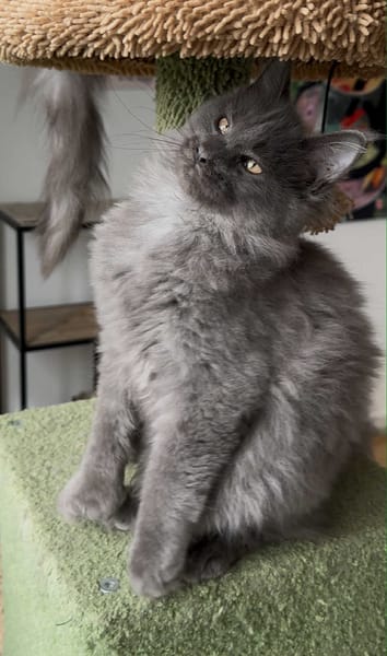 Nos chats vivent avec nous, les chatons grandissent à nos côtés et ont des espaces privés conçus pour eux, pour de meilleures parties de jeu. Ils sont habitués aux bruits, aux voix, aux rires, musique, etc.