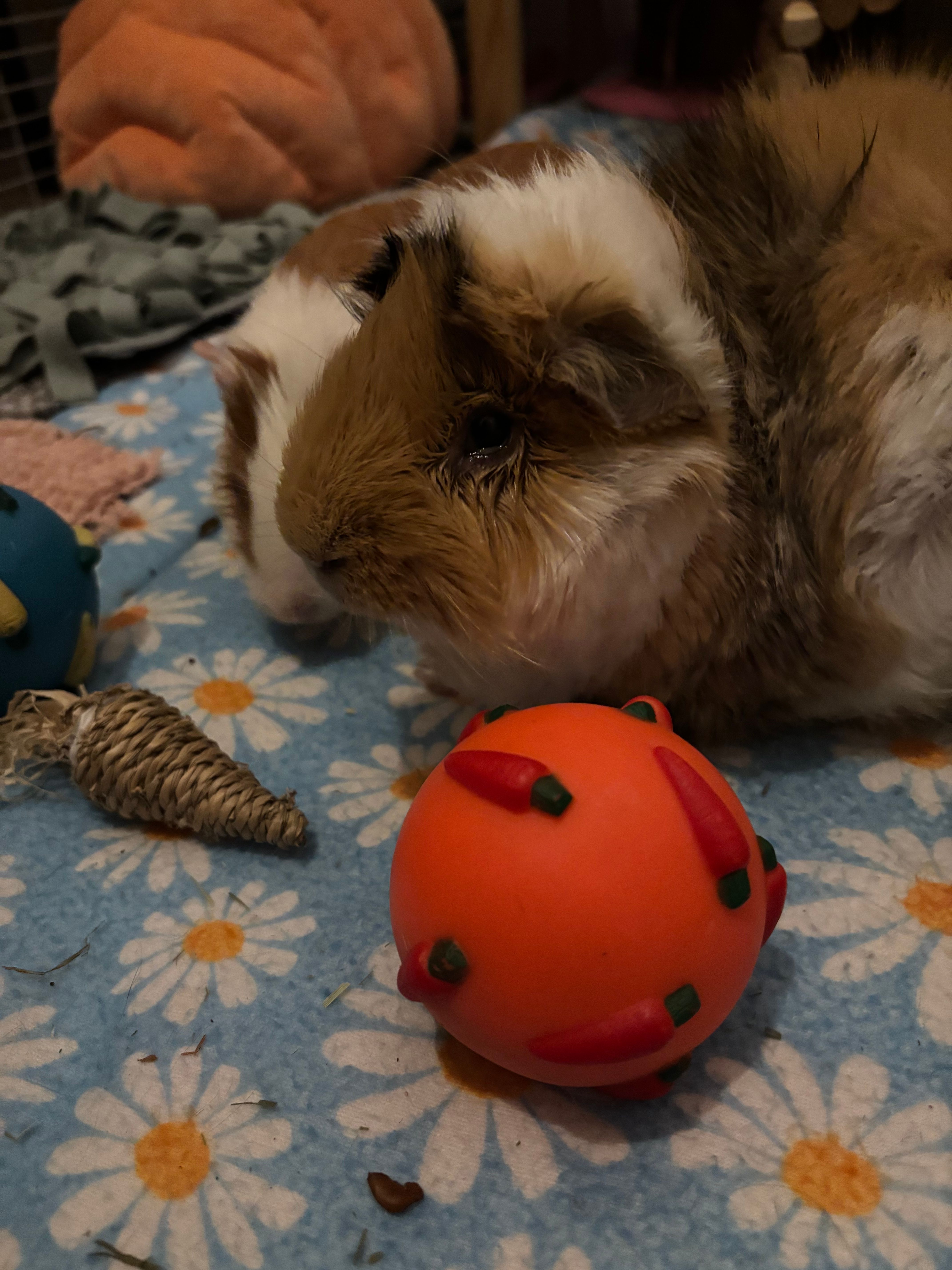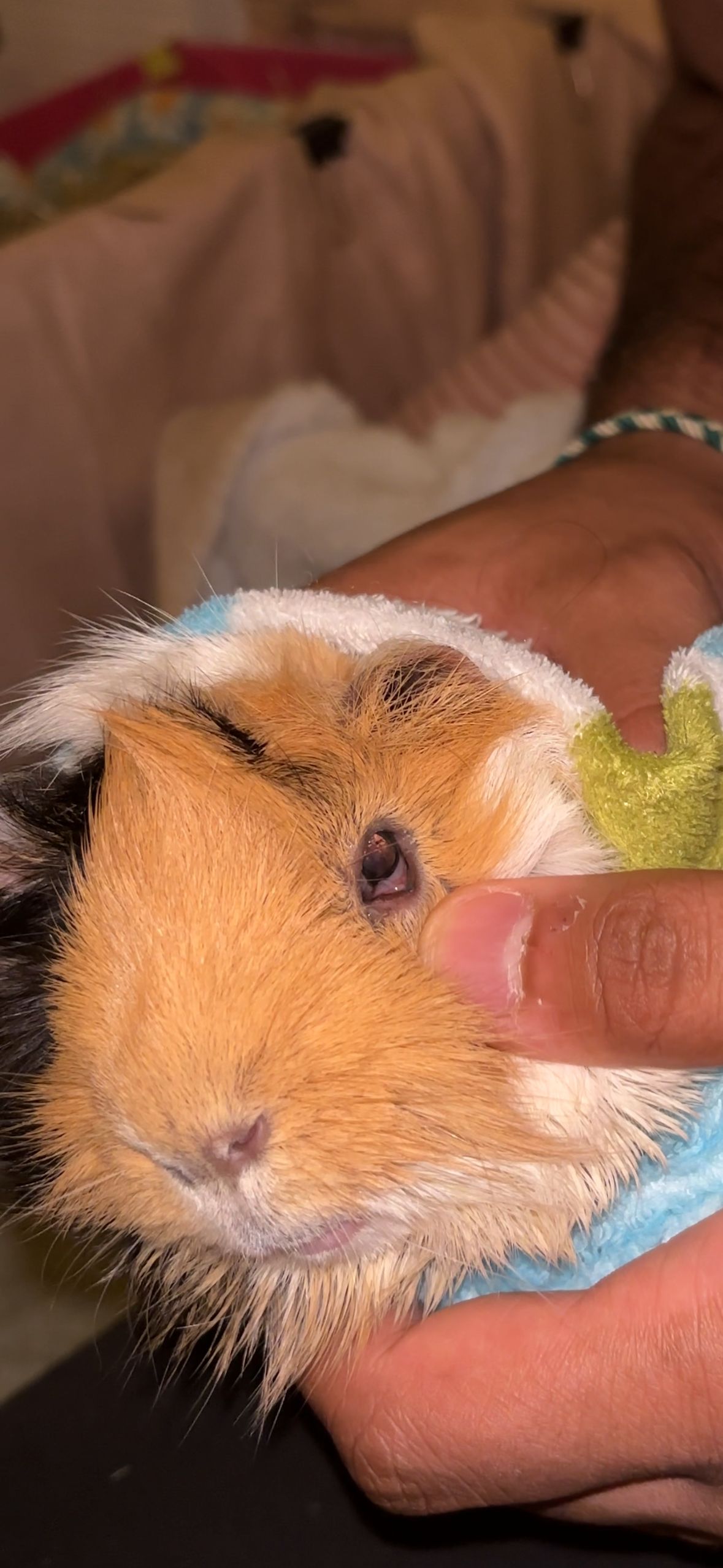 Je lui ai mis du fradexam car mon vétérinaire m’a dit d’en donner si un autre cochon d’Inde avait les symptômes (photo 3) mais la muqueuse de Luigi est blanche donc je ne suis pas sûre que ça soit une conjonctivite … (Gaston avait les yeux rouge)
