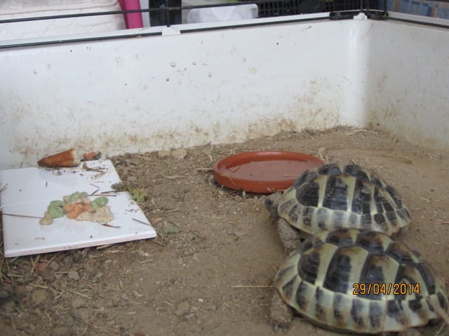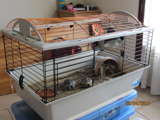 voici la cage de mes tortues hermann (totor et lulu) c'est une cage a lapin mais c'est suffisant