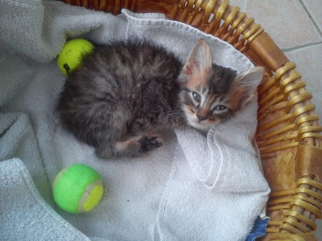 mais surtout un berger allemand de 4 ans et depuis peu de temps un petit chat d'un mois environ, je ne connais pas sa date de naissance, ma fille l'a trouvé dans un jardin abandonné en compagnie d'un autre chaton.