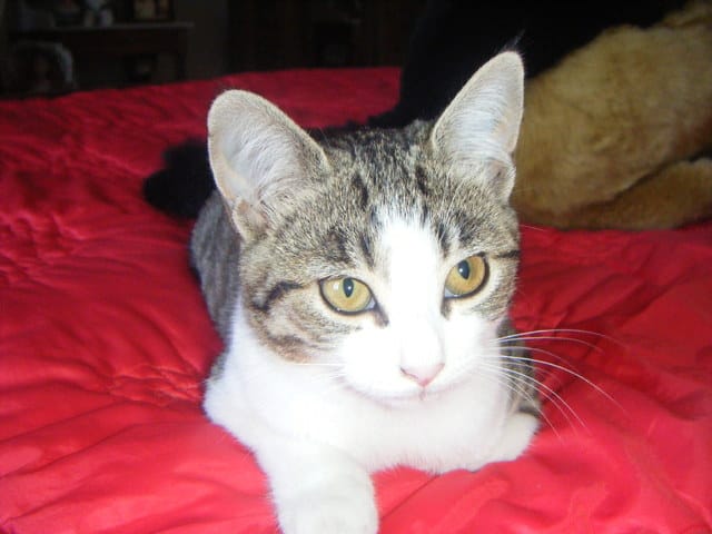 je participe avec Gazelle, elle a 4 ans, c'est un chat européen