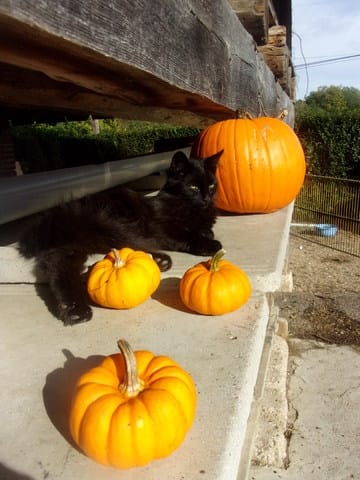 merci nous venons aussi de perdre Mina qui participait au concours Halloween.. Mardi elle a filé entre les jambes du bip et c'est sauvé sur la route et c'est fait percuté.. Nous avons le cœur brisé, surtout mon 2eme fils de 20 mois ces deux là c'étaient choisi mutuellement et partageaient tout repas, dodo, calins