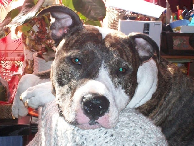 😉 Bonjour Wimpy je te présente Tayzon le magnifique American Staffordshire Terrier de 4 ans ...