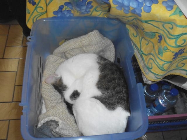 Elle se repose en-dessous du meuble car j'ai joué avec elle !