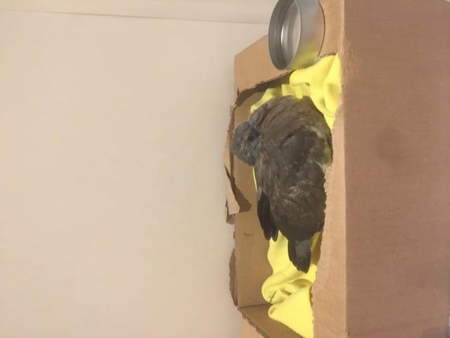 Au passage j’ai rapidement regardé si il semblait blessé mais rien, pas de morsure (de chat) mais peut-être une douleur à l’aile gauche mais je n’en suis pas sure...