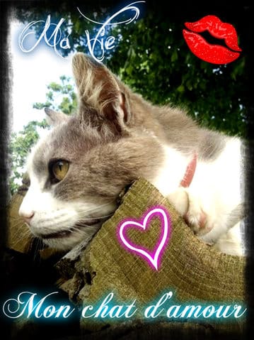avec écris: mon chat d'amour ma vie.