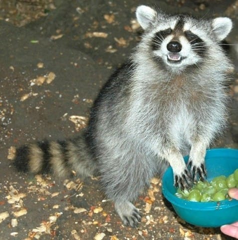 ce sont apparemment des ratons laveurs qui n'ont pas peur de l'homme :