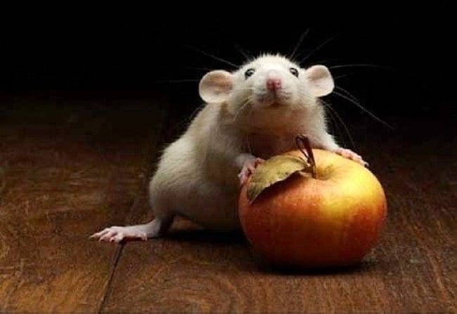 Une souris et sa pomme :