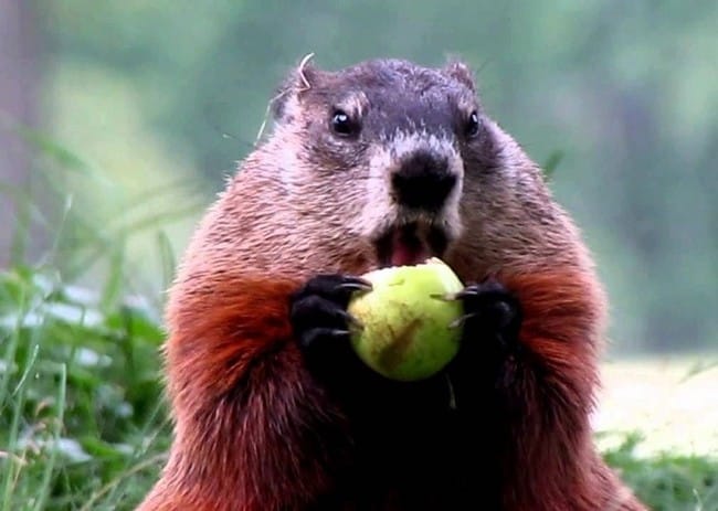 Une marmotte qui dévore sa pomme à pleine dents: