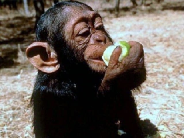 un chimpanzé qui la mange :