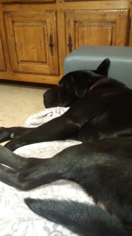 Marley avec son nouveau jouet qu'il a eu pour son anniversaire