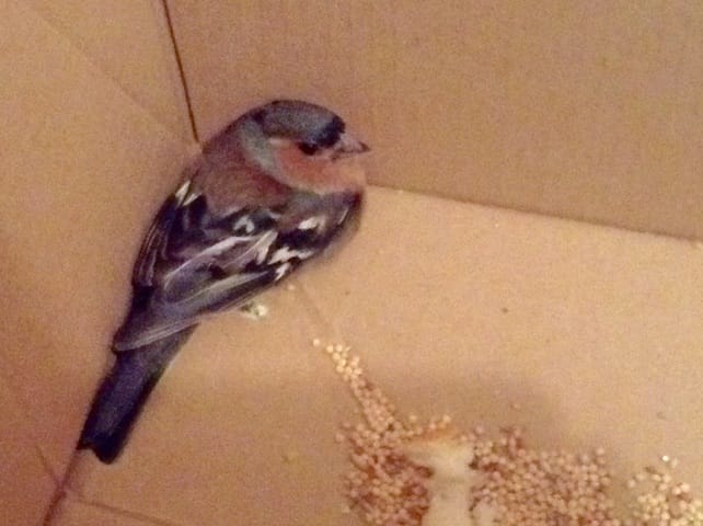 J'ai l'ai mis dans un carton Leclerc avec un petit bac de 2 sur 2 cm d'eau et des graines pour perruches .