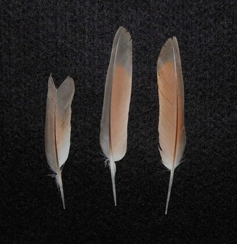 J'ai cru identifier que c'était des plumes des ailes, je doute sur une (la plus grande) car il y a pas mal de duvet a la base ~