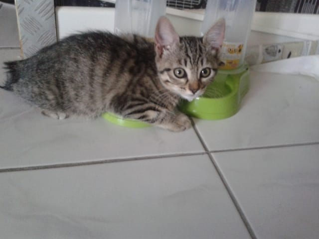 Voici Jenny chatonne de 2 mois, elle a etait sauver des griffes d'un homme monstrueux qui voulais que son chien attaque elle et ses freres et soeurs ...