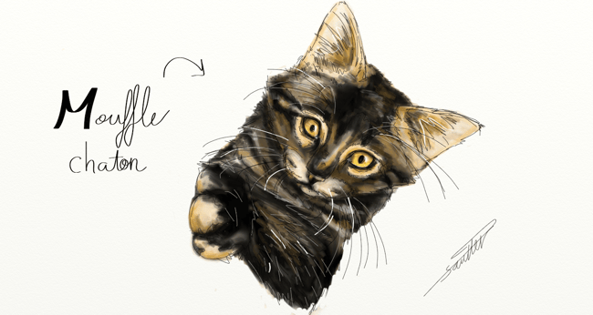 Hey ! Voici un essai de dessin à la tablette graphique. C'est un des premiers alors j'aurais besoin de conseils si il y en a qui s'y connaissent ^^ ( je précise aussi que je l'ai réalisé en 1h max)J'ai dessinée mon chat Mouffle ( l'erreur d'orthographe est fait exprès ahah) lorsqu'elle était qu'un chaton, j'espère que ça vous plaît quand même, mais personnellement je préfère toujours le dessin traditionnel *)