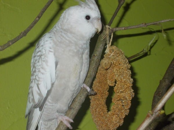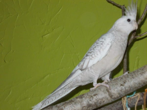 Lili, femelle lutino d'âgé d'environ 1 an quand je l'ai eu. J'ai crue, pendant toute son existence, que c'était un mâle. Il c'est relever, quelque mois après sa mort, que c'était en réalité une petite femelle. J'aurais du m'en douter. Elle n'a jamais chanter comme Gipsy et rare était les fois au je l'entendait "crier" parce que oui je ne pouvais pas appeler ça crier tellement elle était douce quand elle le fessait. Dès les première minute on l'on c'est vue, elle ma tout de suite accorder sa confiance. J'ai mi ma main dans la cage et elle est directement monter dessus ♥ Le début d'une belle histoire d'amour entre moi et mon premier oiseau... Elle adorait sortir. Elle appréciait beaucoup les friandise à base d'oeufs que je lui fessait :) C'était un régale chaque jour de la voir s'épanouir et elle me donnait tant d'amour ma boule de plume...