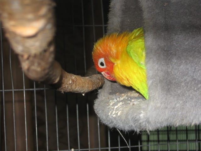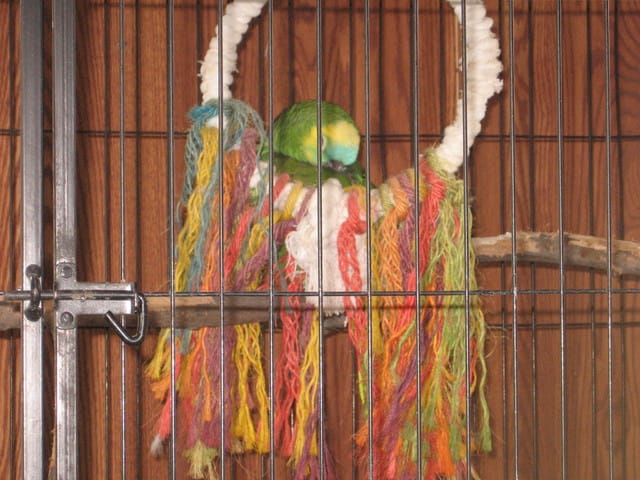 Lilou, femelle de bientôt 2ans EPP. Arrivée le 4 mai 2013 à l'âge de 1 an. Adopté auprès d'un particulier. Elle est craintive de la main. Mais elle s'améliore depuis son arrivée et commence a monter sur mon bras. Depuis l'arrivée de Nuage elle va mieux. Elle adore jouer avec des bout de ficelle . On ne l'entend pas. Elle reste réservée même si une femelle ne fait pas beaucoup de bruit par rapport à un mâle.